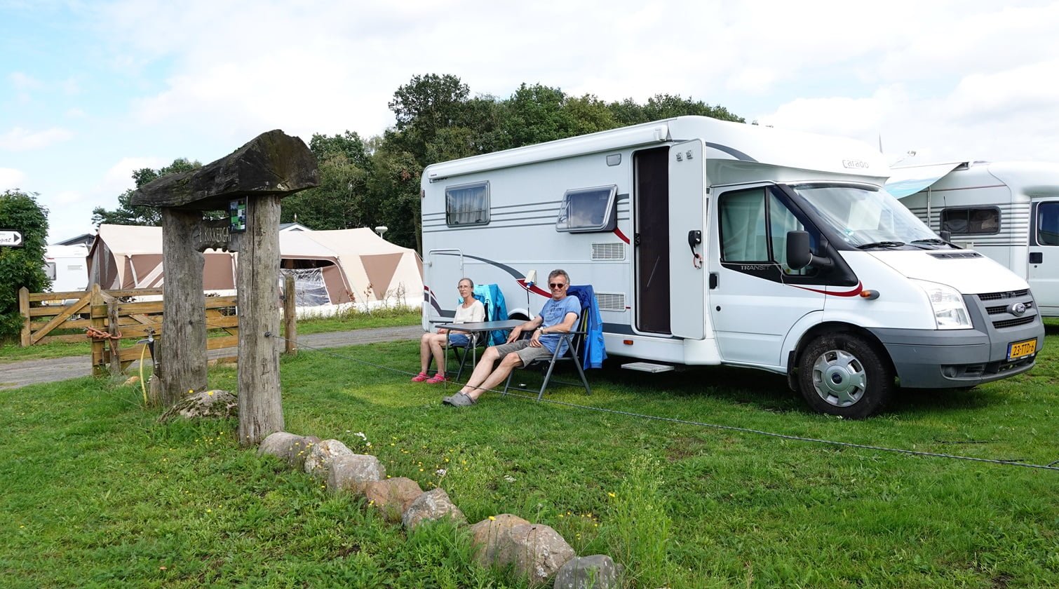 Camperplaatsen zijn plaatsen aan de zijkant van de camping, speciaal ingericht voor campers. Twee parallellen rijen graskeien zorgen voor stabiliteit, de plaatsen zijn voorzien van stroom en beschikken tevens over zowel een watertappunt als een plek om vuil water te lozen. Het is uiteraard mogelijk om een luifel aan uw camper te bevestigen. Elke plek beschikt 6 ampère stroom.